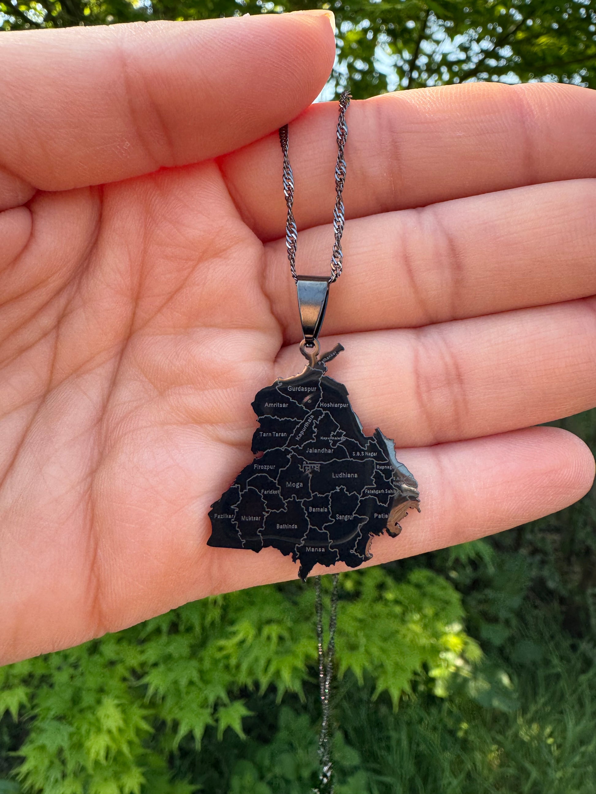 This exquisite necklace features a handcrafted design of the State of Punjab, delicately engraved onto a high-quality pendant.