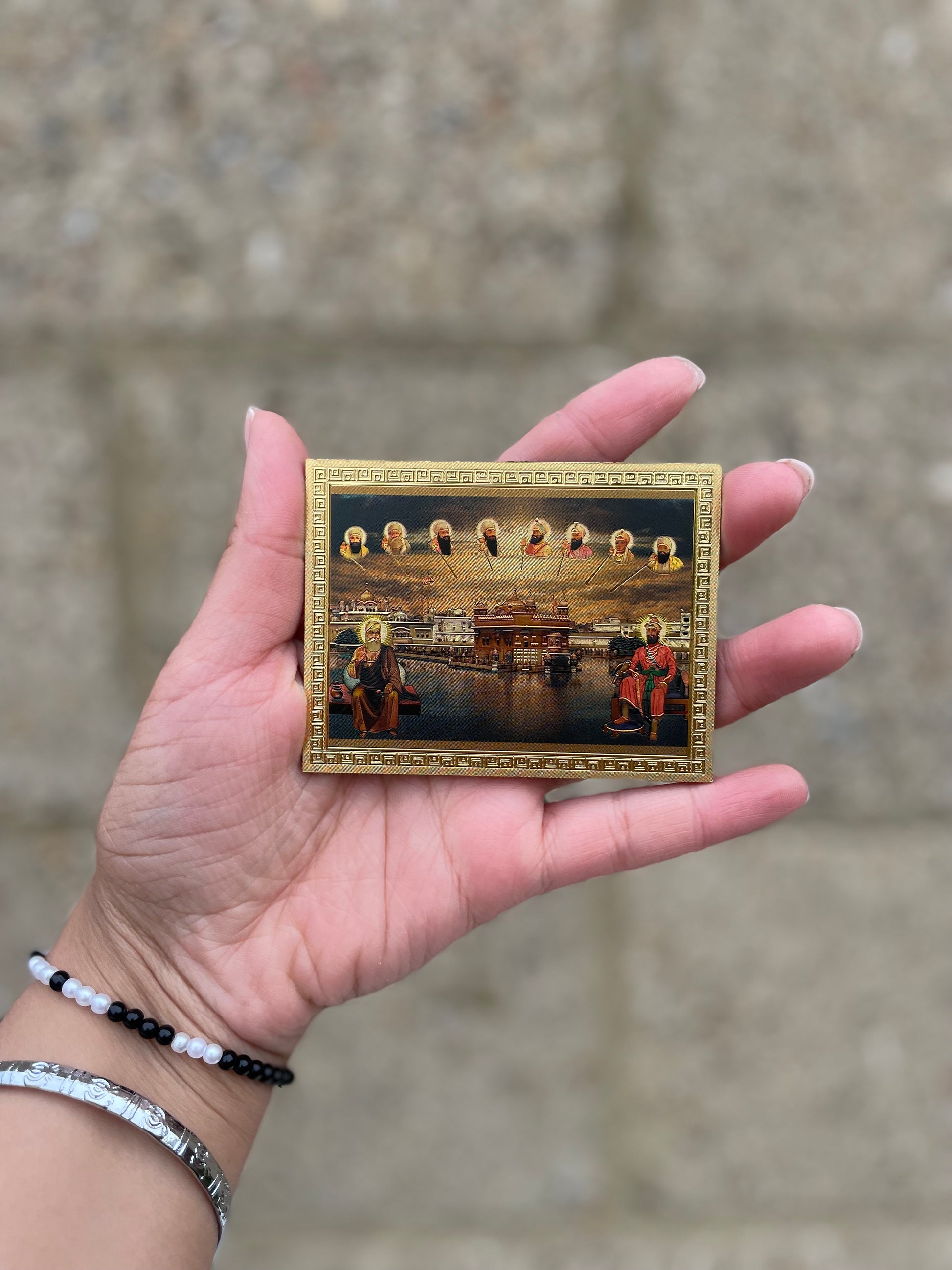 These beautifully crafted magnets feature intricate and vibrant depictions of Sikh heritage, The 10 Gurujis and the holy Golden Temple. Made from durable metal with a luxurious gold-tone finish, these magnets are designed to add a touch of elegance and cultural significance to your home.